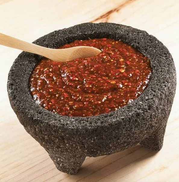 Spicy red sauce, half a liter in quantity.