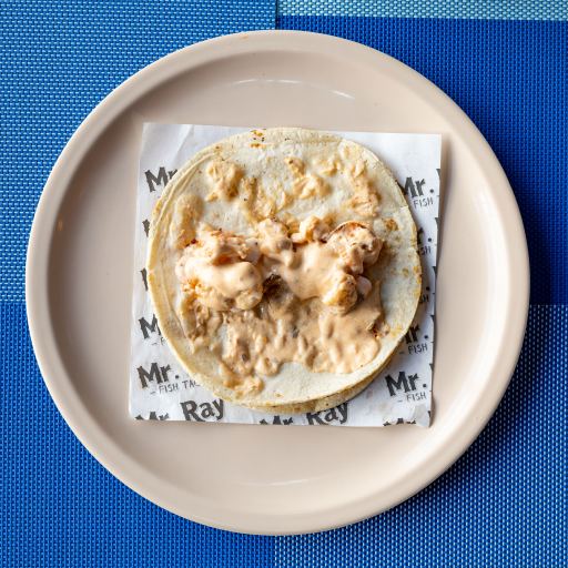 A taco stuffed with shrimp cooked in chipotle sauce.
