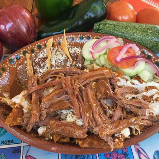 Crispy chilaquiles covered with juicy, slow-cooked birria. Deep, savory flavor that makes this dish a must-try.